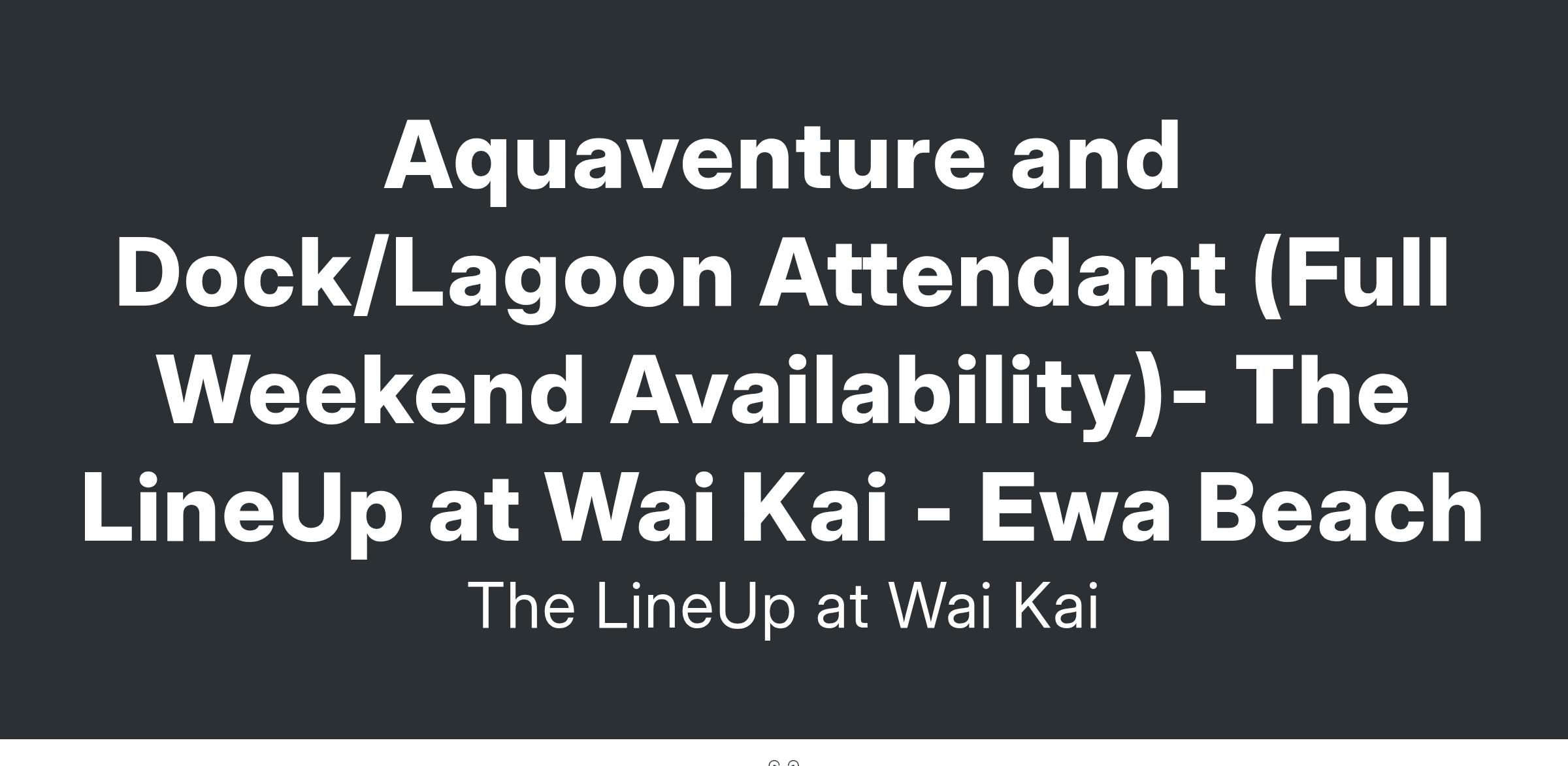 Aquaventure and Dock/Lagoon Attendant (Full Weekend Availability)- The LineUp at Wai Kai - Ewa Beach